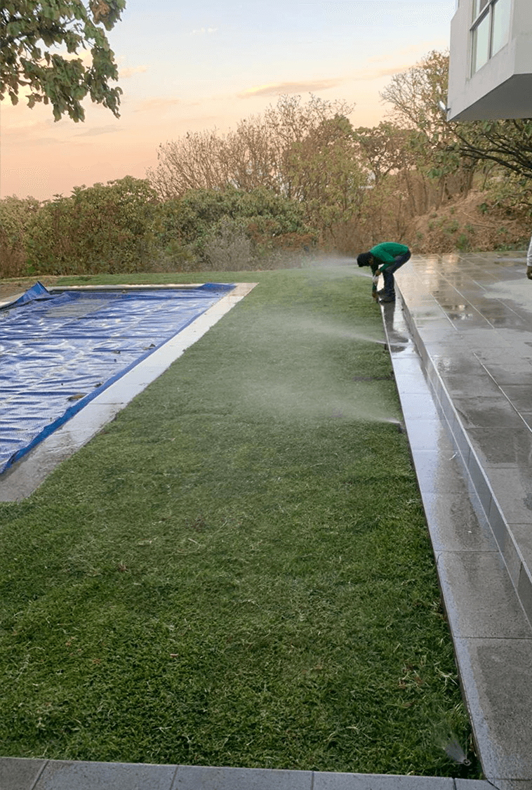 La colocación se realiza con cuidado y precisión, favoreciendo un enraizamiento uniforme y un crecimiento sólido desde el inicio. Complementamos cada proyecto con sistemas de riego bien planificados y recomendaciones claras de mantenimiento, para asegurar que el pasto conserve su apariencia, resistencia y vitalidad.