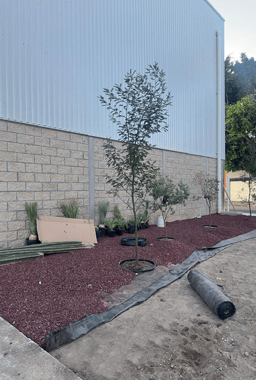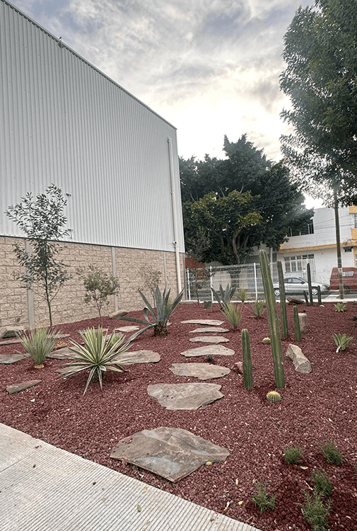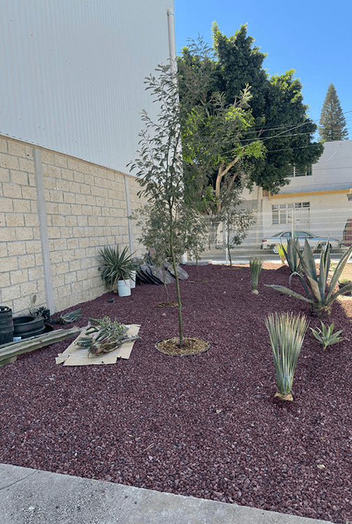 Nuestra propuesta de paisajismo aborda estos espacios como lienzos en blanco donde la naturaleza y la urbanidad se encuentran en equilibrio. A través de la selección estratégica de plantas resistentes, de bajo mantenimiento y adaptadas al entorno, combinadas con elementos como piedra, grava y acabados naturales, creamos composiciones que aportan orden, frescura y carácter sin interferir con la operación industrial.