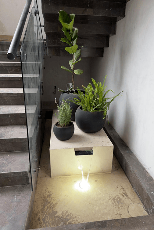Pero la verdadera diferencia está debajo de la superficie. El sistema de riego no es un accesorio, es el motor silencioso que sostiene todo el concepto. Diseñado con precisión, se adapta al ritmo del entorno, optimiza cada gota y asegura que cada elemento verde se mantenga en su mejor estado sin depender del azar. Es eficiencia inteligente integrada al diseño, sin comprometer la estética.